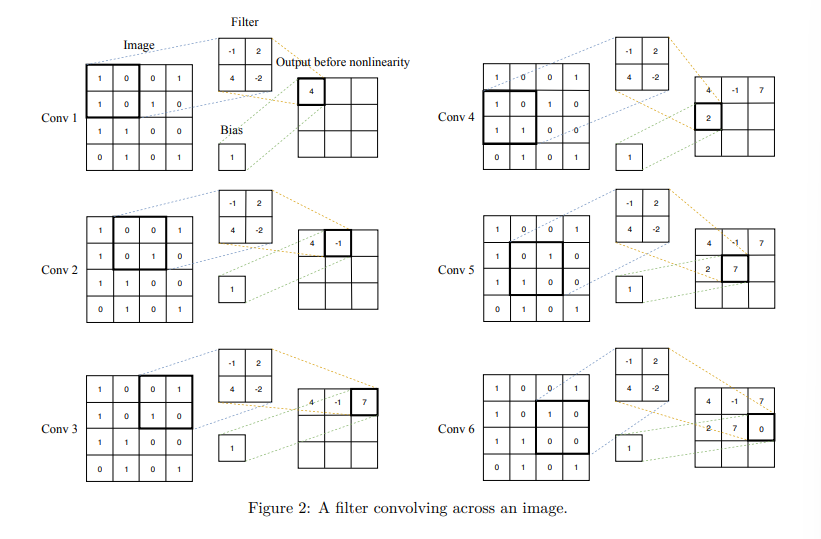 In CNNs, a small regression model looks like the one in the multilayer perception image. To detect some pattern, a small regression model has to learn the parameters of a matrix